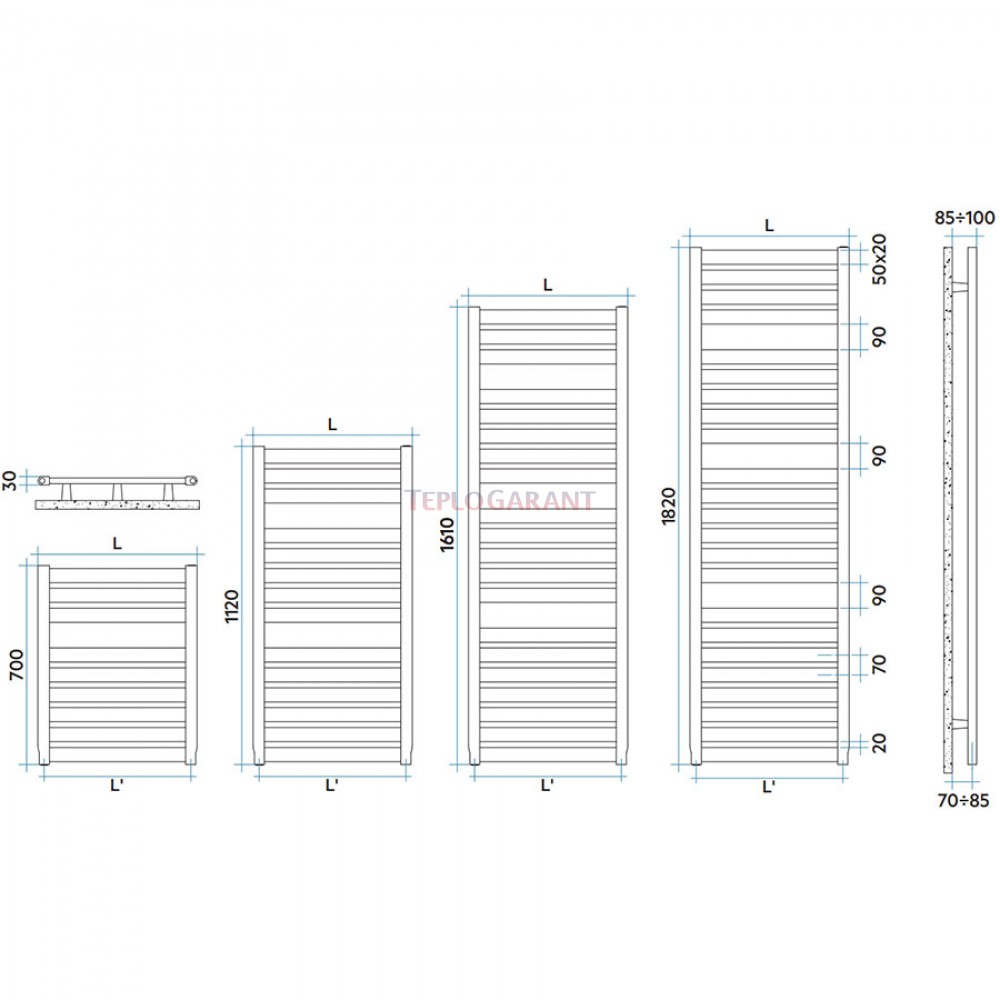 • сталева сушка для рушників з горизонтальними овальними трубками діаметром 50х20 мм