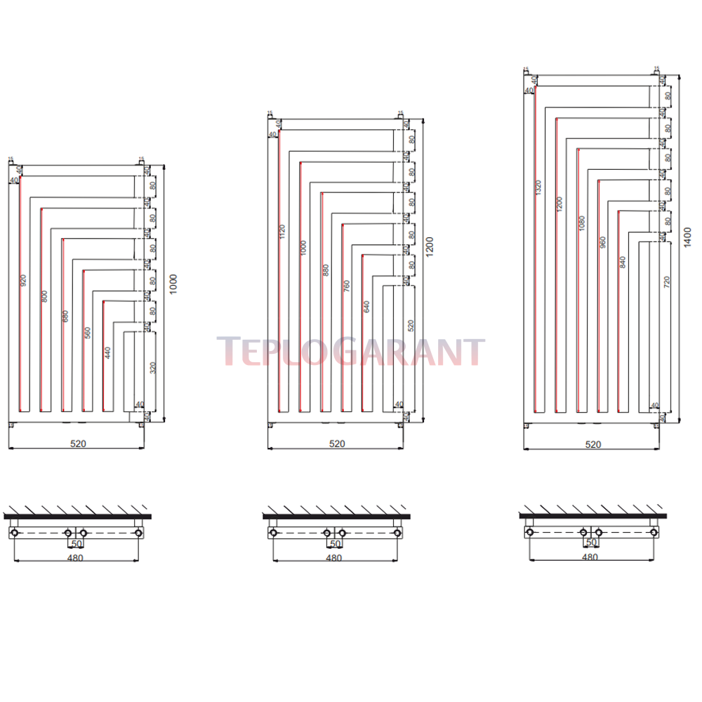 Розміри рушникосушки також забезпечують її універсальність - висота складає 1200 мм, ширина - 520 мм, що дозволяє вішати на неї рушники різної довжини та розміру. Рушникосушка має 5 «поличок», що дозволяє вішати на неї багато рушників одночасно.