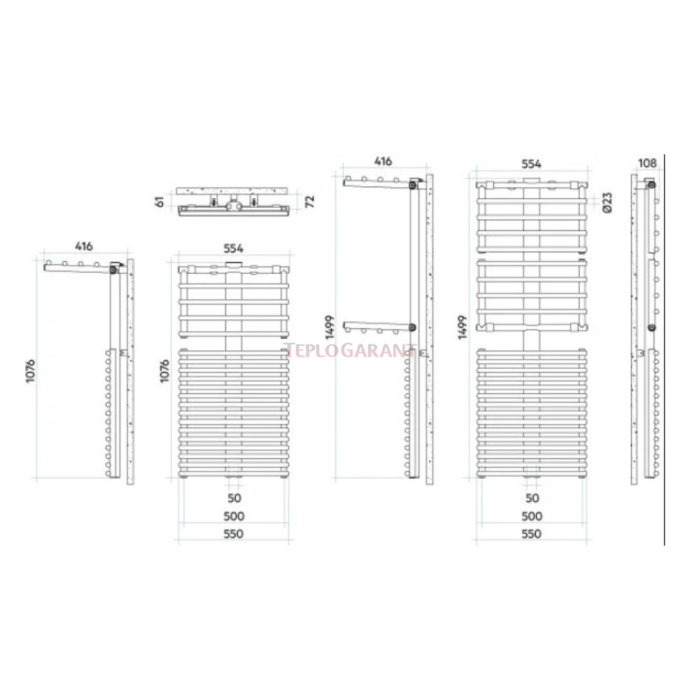 Характеристики - Дизайнерский полотенцесушитель IRSAP GET UP 1499х550