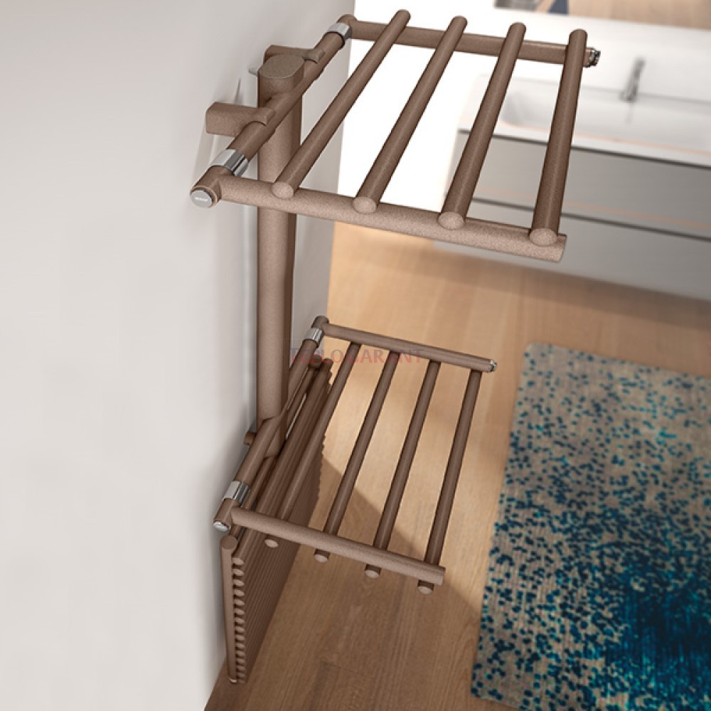 Полотенцесушитель Get Up благодаря конструктивным особенностям ее можно использовать как вешалку для одежды, благодаря запатентованному двойному шарниру, позволяет открывать на 90° некоторые части конструкции, сочетая таким образом функциональность и практичность и расширяя ее функционал.