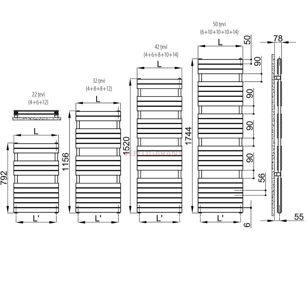 XILO – стальной полотенцесушитель с прямоугольными трубчатыми