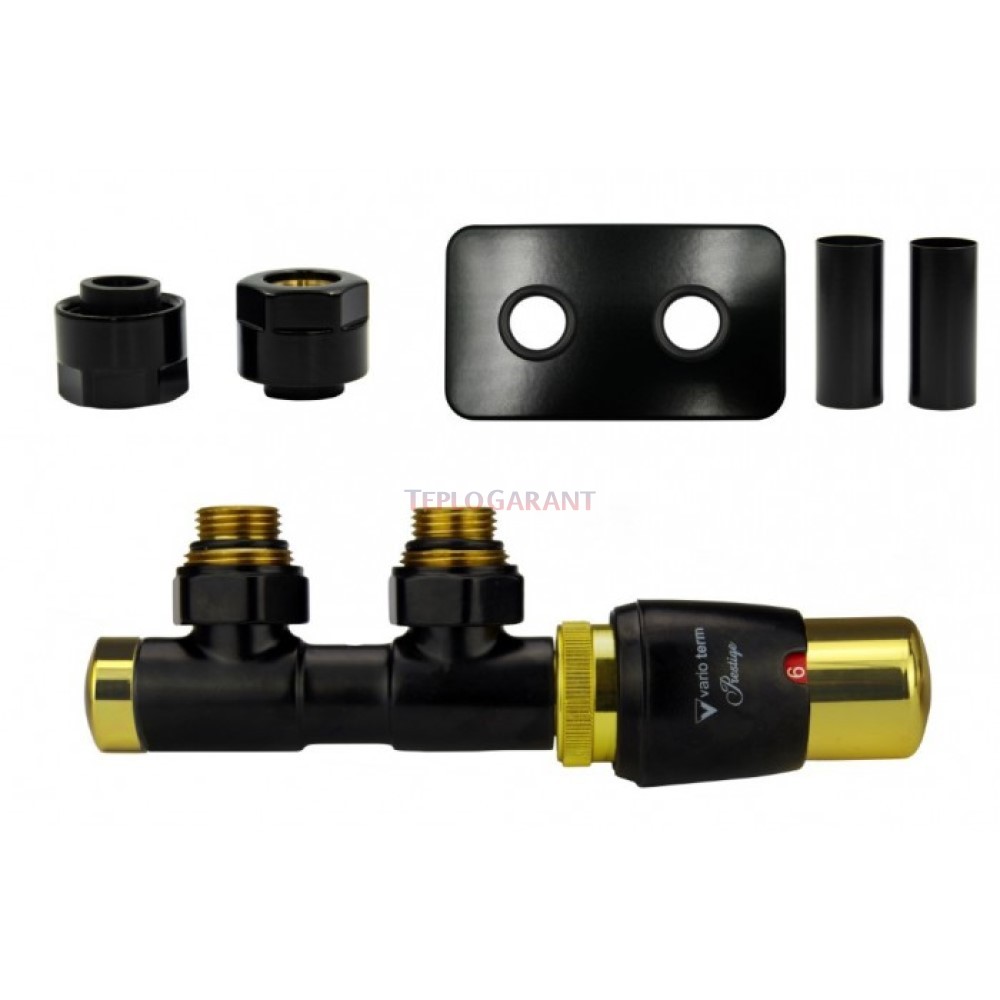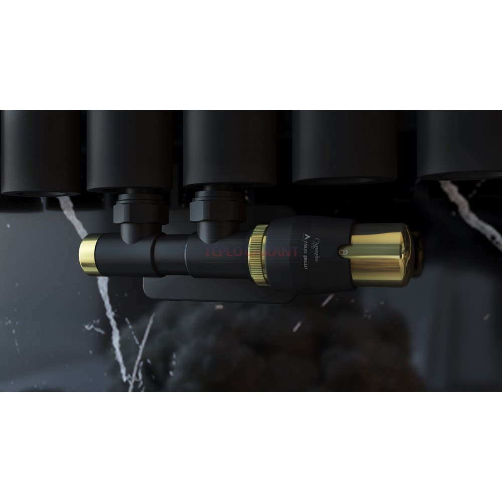 Характеристики - Кран радиаторный Vario Term All In One Twins Glamour Черный мат + Золото Правый