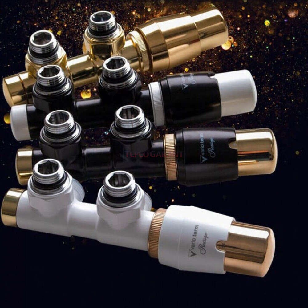 Характеристики - Кран радиаторный Vario Term All In One Twins Glamour Золото Левый